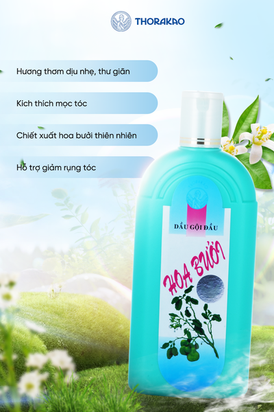 Dầu gội đầu hoa bưởi THORAKAO được kết hợp từ tinh dầu hoa và vỏ bưởi. Đây là một phương pháp điều chế theo cổ truyền rất độc đáo tại Việt Nam. Dầu bưởi THORAKAO làm tóc mềm mại óng mượt, làm đỡ khô da dầu, làm da đầu mềm mại mịn màng. Đặc biệt nếu tóc bị rụng, tinh dầu bưởi có tác dụng thấm sau vào da đầu, nuôi dưỡng tóc chắc khỏe tự nhiên. Với những đặc chế độc đáo từ dầu gội hoa bưởi THORAKAO sẽ giúp bạn có mái tóc như ý.