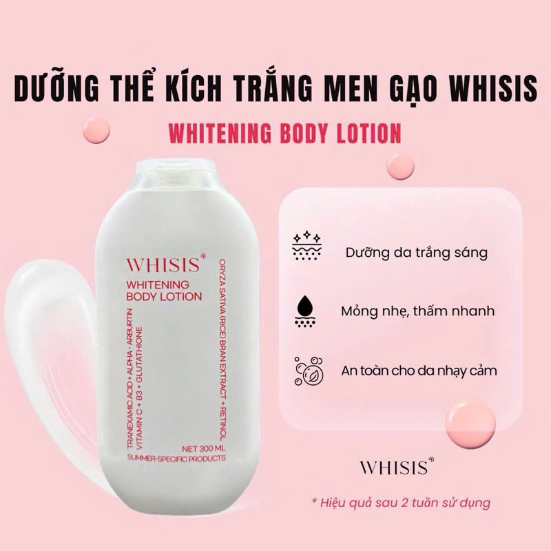 Dưỡng thể kích trắng Men Gạo Retinol Whisis Whitening Body Lotion 300ml