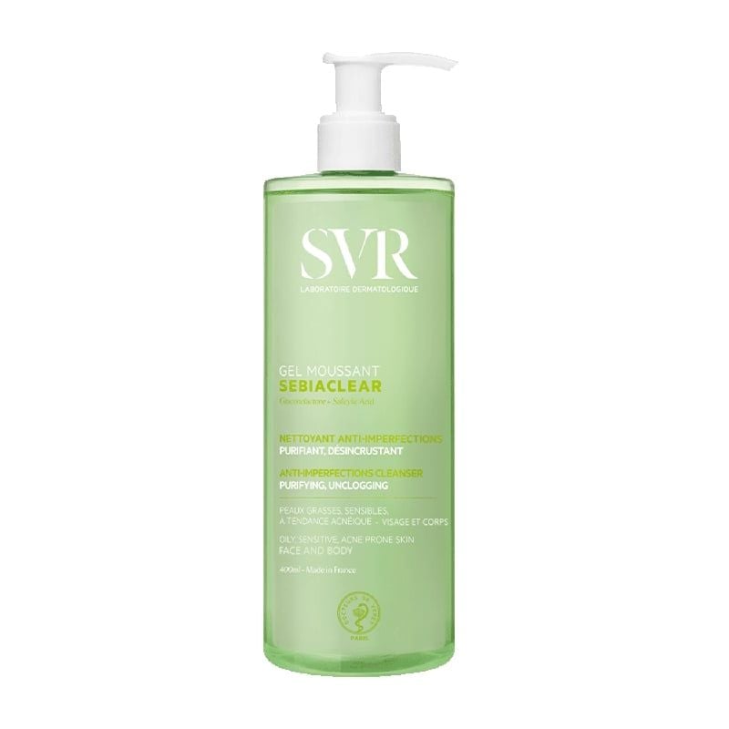 Gel rửa mặt SVR Sebiaclear Gel Moussant là sản phẩm được thiết kế chuyên biệt cho làn da hỗn hợp đến da dầu, da mụn nhạy cảm. Sản phẩm không chứa xà phòng, cồn hay chất tạo màu, sử dụng các hoạt chất da liễu nồng độ cao để thanh lọc da, loại bỏ tạp chất và bã nhờn dư thừa mà không gây khô da hay làm mất cân bằng màng hydrolipidic tự nhiên của da.