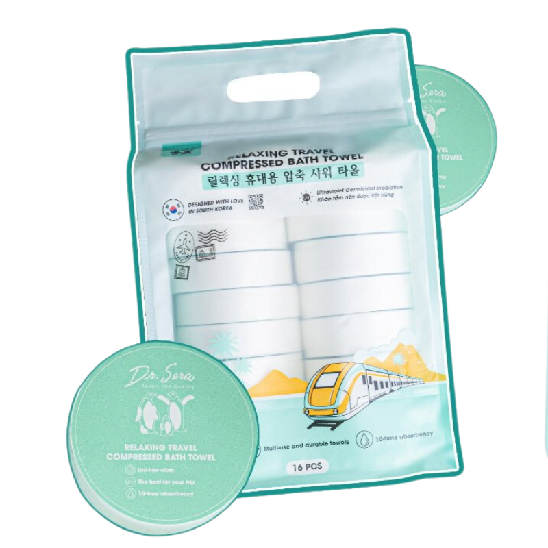 Khăn mặt nén du lịch thư giãn tiệt trùng Dr.Sera Relaxing Travel Compressed Facial Towel