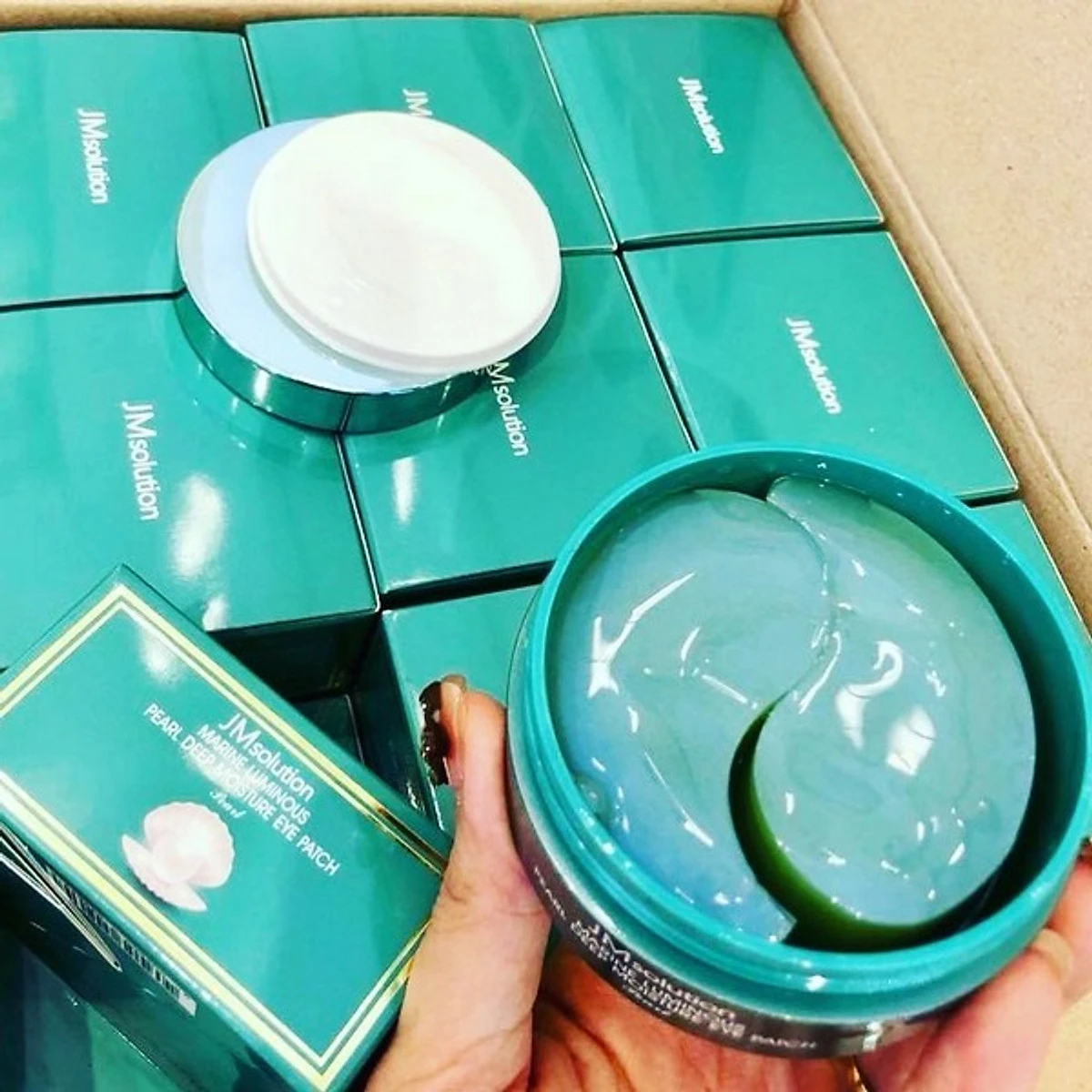 - Màu xanh ngọc trai: Mặt nạ này sẽ có chức năng dưỡng ẩm sâu, giảm thâm quầng mắt và cải thiện nếp nhăn với chiết xuất đến từ ngọc trai JM Solution Marine Luminous Pearl Deep Moisture Eye Patch (Pearl).