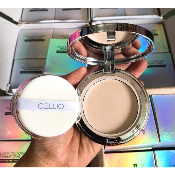 - Cellio Ex Collagen Twoway Cake SPF 30 giúp cho sự phát triển tái tạo da, chống lại hiện tượng lão hóa dó đó chất collagen trong sản phẩm prestige moisture soft pact có chức năng tổng hợp từ những hạt rỗng mịn tăng khả năng đàn hồi và độ láng mượt của làn da, giúp bạn luôn giữ mãi làn da mềm mại mịn màng tràn đầy sức sống.