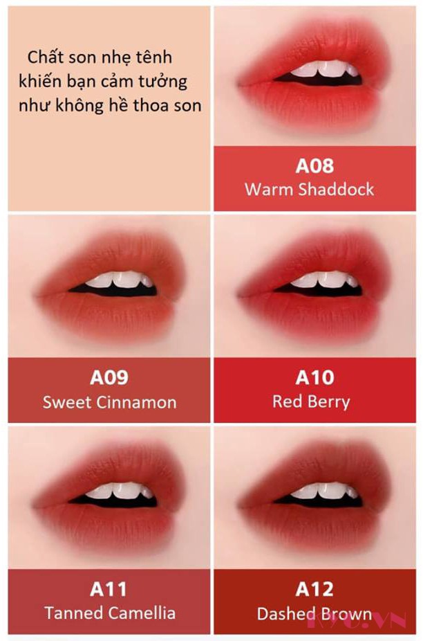- A09 - Sweet Cinnamon: Hồng quế (cam đất base hồng nhẹ), màu sắc trendy và dễ dùng.