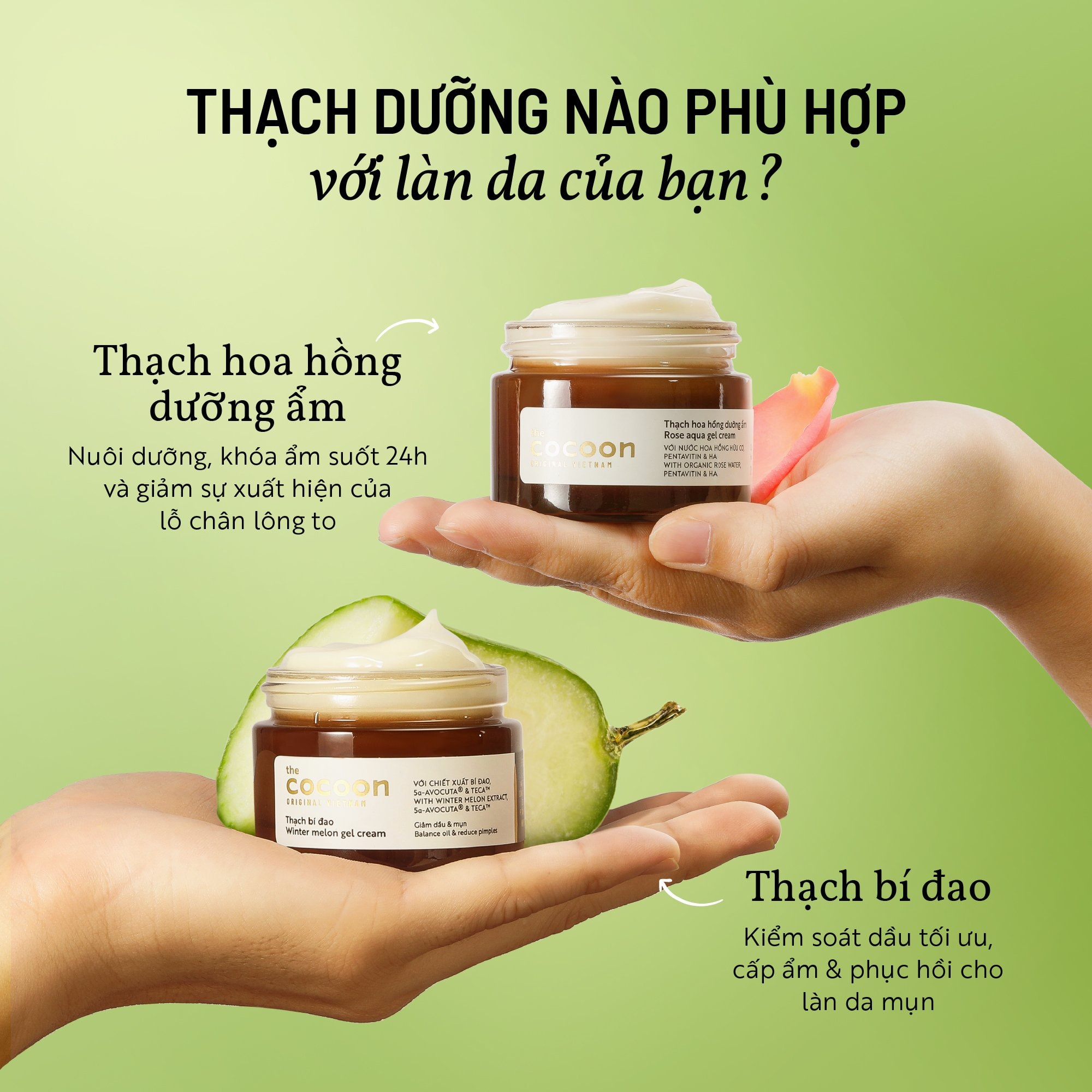 Thạch Bí Đao Dưỡng Ẩm Cocoon Giảm Dầu và Mụn Winter Melon Gel Cream 30ml phù hợp sử dụng với da dầu, da mụn, da hỗn hợp thiên dầu.